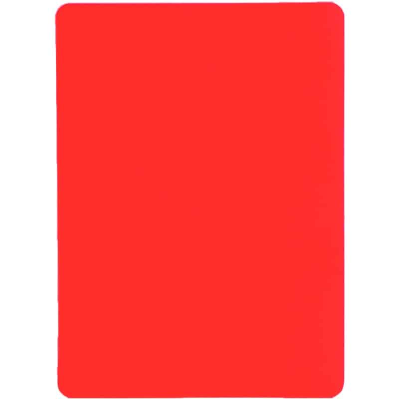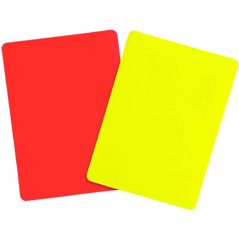 Kestävästä materiaalista valmistetut tuomarin kortit – keltainen ja punainen. Kirkaat ja selkeät värit pitkäikäiseen käyttöön.